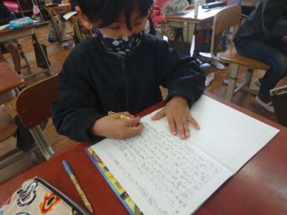 1・2の場面を読んで想像した3の場面をノートに書きました。次の時間に交流するのが楽しみです!