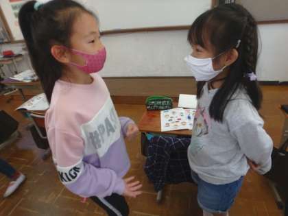 色々な国の挨拶について学習しました。友だちとも交流をし,「Hello.」や「I'm〜.」の言い方にも慣れることができました。