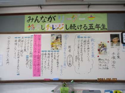 今日の道徳は,有名なマンガ家「手塚治虫」さんを題材として,自分の良さを伸ばしていく大切さについて考えていきました。