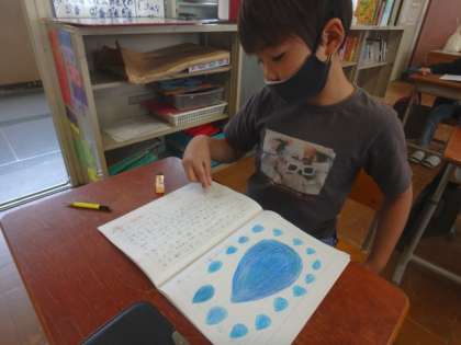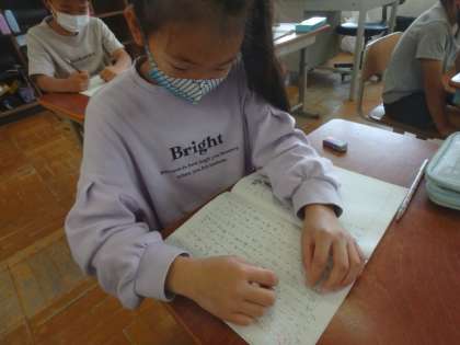 自分が想像した3の場面の交流会をしました。友達の書いた物語を黙々と読む子どもたちでした。