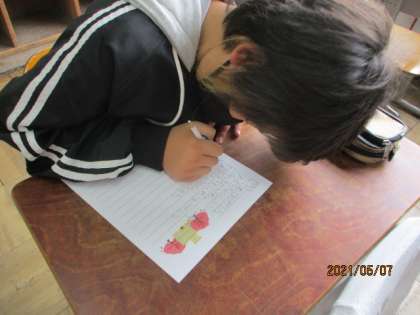 7日(金)の授業の空いた時間を使ってみんなでお母さんに渡す手紙を書きました。