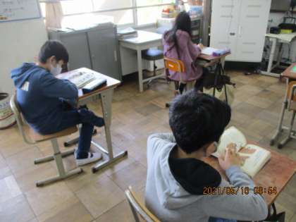 月曜日の朝は読書でスタートです。金曜日に図書室に行って本を借りていたので,音楽がなる前から本を読んでいる人が多かったです!