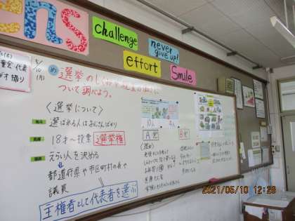 それぞれを選ぶときに自分の意見をもっておくことが大切です。今日の学習では全員が自分の意見をしっかりもち,「○党がいい」と言えたのでとてもよかったです!
