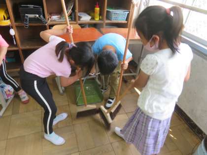 新しい場所になり、心機一転!自主的に掃除に向かう姿勢はとても頼もしいです!