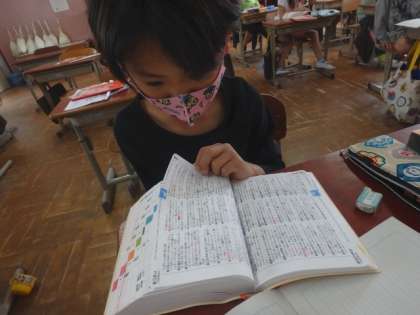 国語辞典の使い方を学習しました。「バレー」と「バレエ」,どちらが先に載っているのか。子どもたちは楽しみながら課題に取り組んでいました。これからの学習でも,継続して国語辞典を使いながら,素早く引けるようになってほしいと思います。