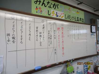 子ども達と学習計画を立て,インタビューまでにどんな学習をするのか見通しをもつことが出来ました。