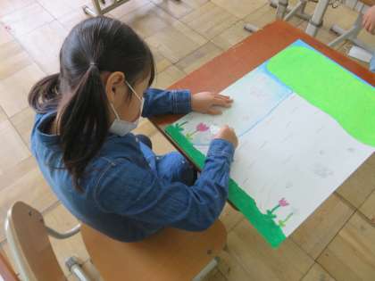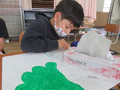 丁寧に色を塗る子ども達の姿にとても感心しています。