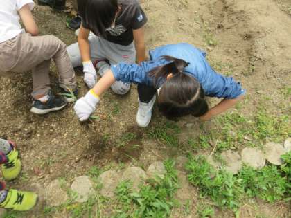 根っこから抜くのが難しい様子でしたが、しっかりと頑張っていました。
