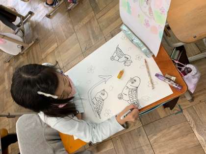 4年生は鳥の絵をかいています。