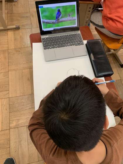 タブレットや図鑑を使い,どんな鳥を決めたあとは,じっくり観察しながら絵をかきすすめていました。