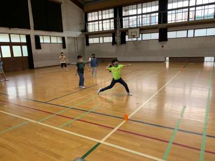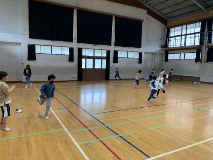 遊び係が計画した「ドッジボール」と「おにごっこ」を全力で楽しみました。