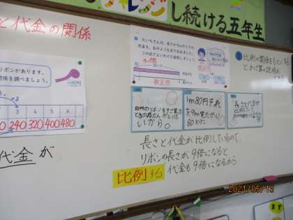 比例というのはどんなものかを学習した子ども達は,今日は比例の性質を使って,理由の説明をがんばりました。