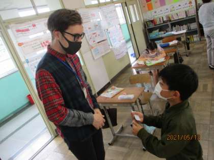 今日はALTのアンドリュー先生も来ていただいたので,アンドリュー先生の名刺をもらうために積極的に話しかけている子ども達がとても素晴らしかったです。
