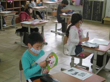 今日の音楽は前回の学習の鑑賞の続きで、音楽を聴きながらその雰囲気や気付いたことを書きだす学習でした。