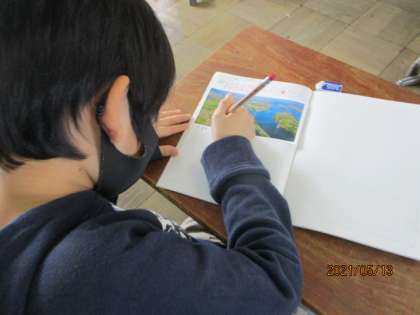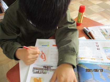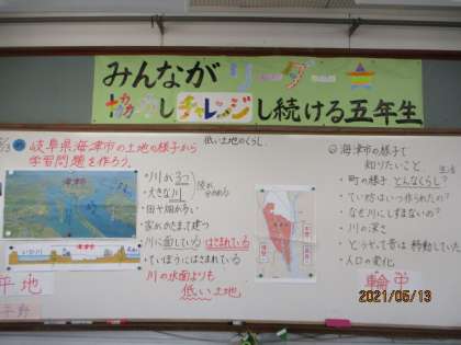 社会科では,岐阜県海津市の様子を見て,いろいろ気づくことを発表し合いました。