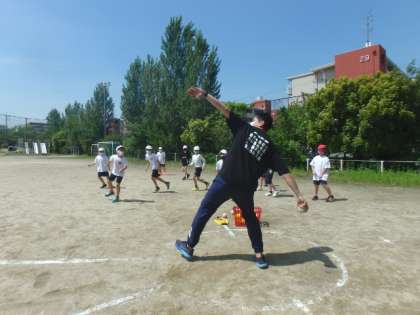 体力テストの最後の種目,ソフトボール投げを行いました。投げる角度に気を付けながら,遠くまで投げることができましたね!