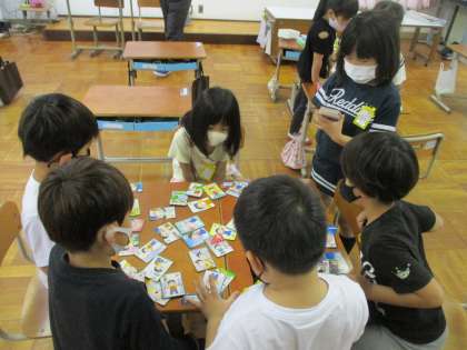 雨だったので,休み時間は教室で過ごしました。カルタをしている子もいれば,絵を描いてる子もいて,思い思いの楽しい時間を過ごしています。