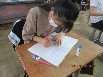 テストを返却してもらい,間違えていたところをしっかり復習している人がいて,成長を感じます。そして,学んだことを実生活へどのように生かせるのかを考える確認テストをしました。