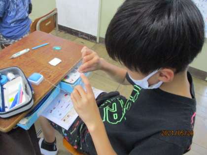 その後は,針に糸を通し「玉結び」の練習をしました。