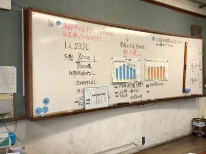 今日は、京都市では1日にどのくらいの水を使っているかの学習をしました。