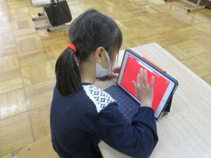 自立活動の時間では、タブレットでロイロノートという教材を使う練習をしました。なかなか難しそうにしていましたが、一生懸命タブレットを使いこなそうとしていました。