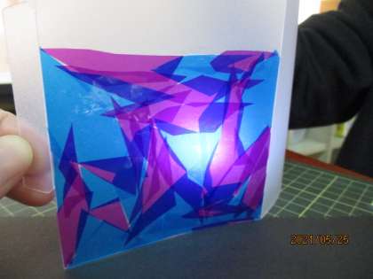 明かりをつけるとセロハンの色も少し変化して,おもしろいです。完成まであと少し!
