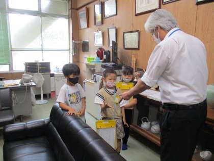 校長先生にも質問をたくさんしていました。中には,「校長先生お仕事頑張って下さい。」と部屋を出ていく子もいたようです。