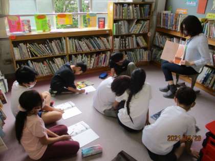 図書館司書の永井先生にも本を読んでいただき,45分の読書の時間にたくさんの本を読めた子がたくさんいました。