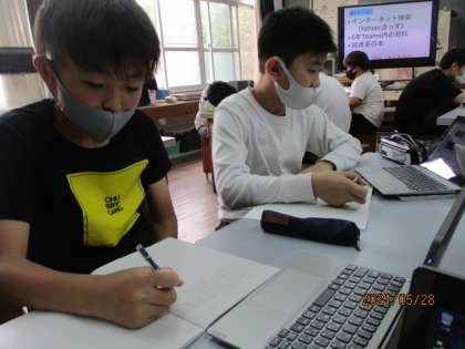 今日は呼吸の仕組みについて調べました。一人ひとりが黙々と調べることができました!