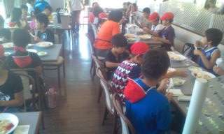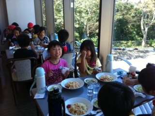 *今回ばかりはちょっとした旅行気分。マリンランド内のレストランで昼食をいただきました。