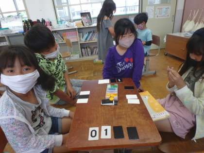 この日は「アルゴ」というカードゲームをしました。数字を裏にして順番にならべ,ヒントをもとに相手のカードを当てていくゲームです。子どもたちは大喜びでした!