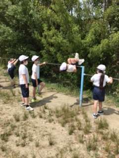 昨日はとても暑い体育でしたが、今日はくもり空で心地よい風の中活動することができました。