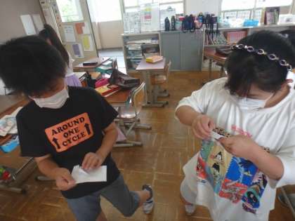 休み時間に,図書館に行っている子が多くいます。今日はどんなしおりをもらったのかな〜?
