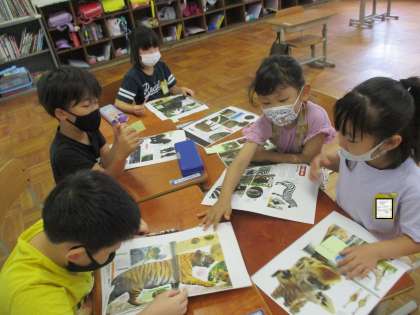 国語の学習で,「動物なんでしょうクイズ」を作る計画を立てました。今日は,それぞれ何の動物のクイズにするかを決めました。