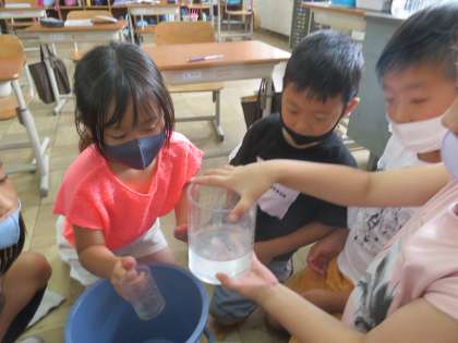 実際に1Lを測ったり水の量を調べてみると面白く,積極的に活動に参加していました。