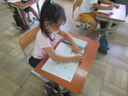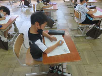 子ども達は書き順の話をすると少し自信なさそうにしていましたが,一字一字しっかりと確認をしながらやると最後にはとても丁寧に書ききることができました。
