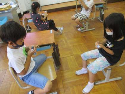 まずは,交互に問題を出し合う「いくつかなゲーム」,その次は,答えの大きさを勝負する「大きさくらべゲーム」をしました。