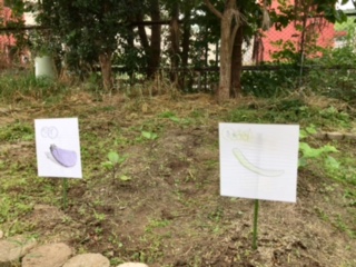 ツルレイシの畑に立てる名前札を作ってくれたので立てました!