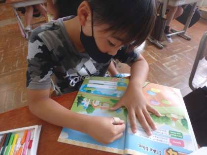 自分だけの虹を作り,使った色を友達と交流しました。2年生の時に学習した色の言い方をしっかりと覚えていましたね!
