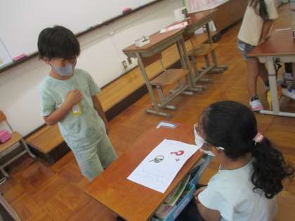 国語の「くちばし」で学習したことを生かして,動物クイズを作ったので,クイズ大会をしました。「丸いはなです。これは,何のはなでしょう。」といったように,写真を見せながらクイズをしました。
