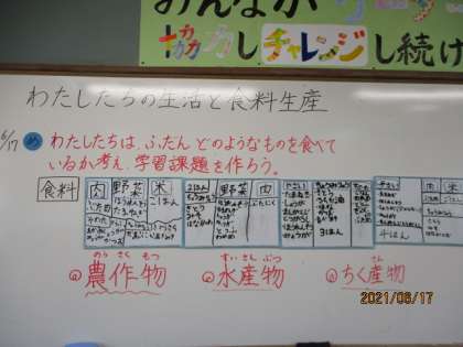 最後に,「農作物」「畜産物」「水産物」という言葉も学習し,これからの学習計画を立てることが出来ました。