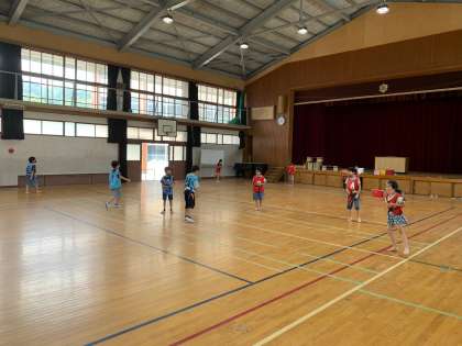 体育館でタグ取りを,みんな夢中で楽しみました。