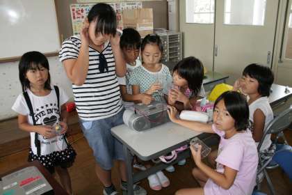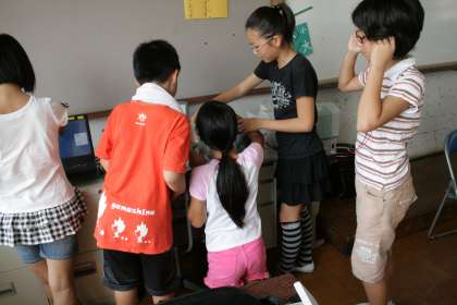 今回の土曜教室は,簡単な自作スピーカーを作りました。プラスティックコップ,強力磁石,エナメル線,接続ジャック,セロテープ等と簡単な材料を用いて,自分で作りました。エナメル線でコイルを作るところから始めました。細かい作業で線をこじらせないように注意しながら進めました。できあがったら,両端に接続ジャックをつなぎ,コップに貼り付け,さらに強力マグネットを貼り付けるとできあがりです。ジャックをラジカセにつないでボリュームを上げると・・・・・小さな音ですが,CDの美しい音楽が聞こえてきました。試しにいろいろと曲を変えてご満悦の時間でした。