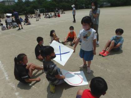 1年生を迎える会がありました。3年生からもクラスの代表の人が1年生に向けて言葉を言いました。小栗栖の○×クイズでは,1年生が上げる画用紙をやさしく支えている姿が微笑ましかったです!