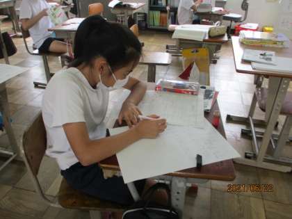 文字の大きさを考えたり,図や写真を貼りつける位置を考えたりしながら,一人一人と手もていねいに仕上げていました。