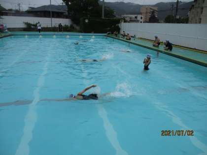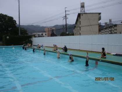 雨が心配でしたが,何とか高学年も今年度初めての水泳学習をすることができました。昨年度は実施できなかったので,少し不安げな子もいましたが,楽しみながら活動することができました。たくさん練習して,泳力をしっかりつけていきましょう!
