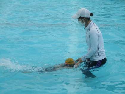 あいにくの曇り空でしたが,水中に潜ったり,バタ足をしたりと楽しい時間を過ごしました。