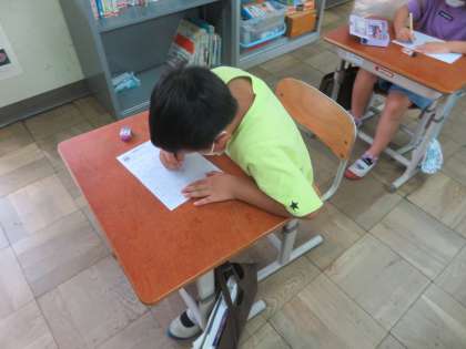 最近漢字ドリルのテストを集中して頑張る姿が光っています。