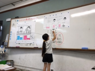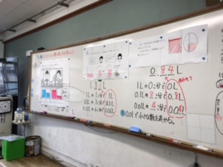 かさの目盛を読むことを通して0.1より小さい0.01の学習をしました。