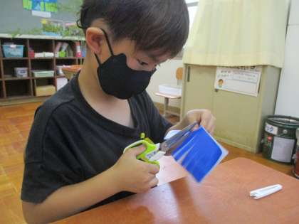 七夕のかざりを作りました。はさみを上手に使って,素敵なかざりが完成しました。7日には,みんなで飾りつけをしようと思います♪